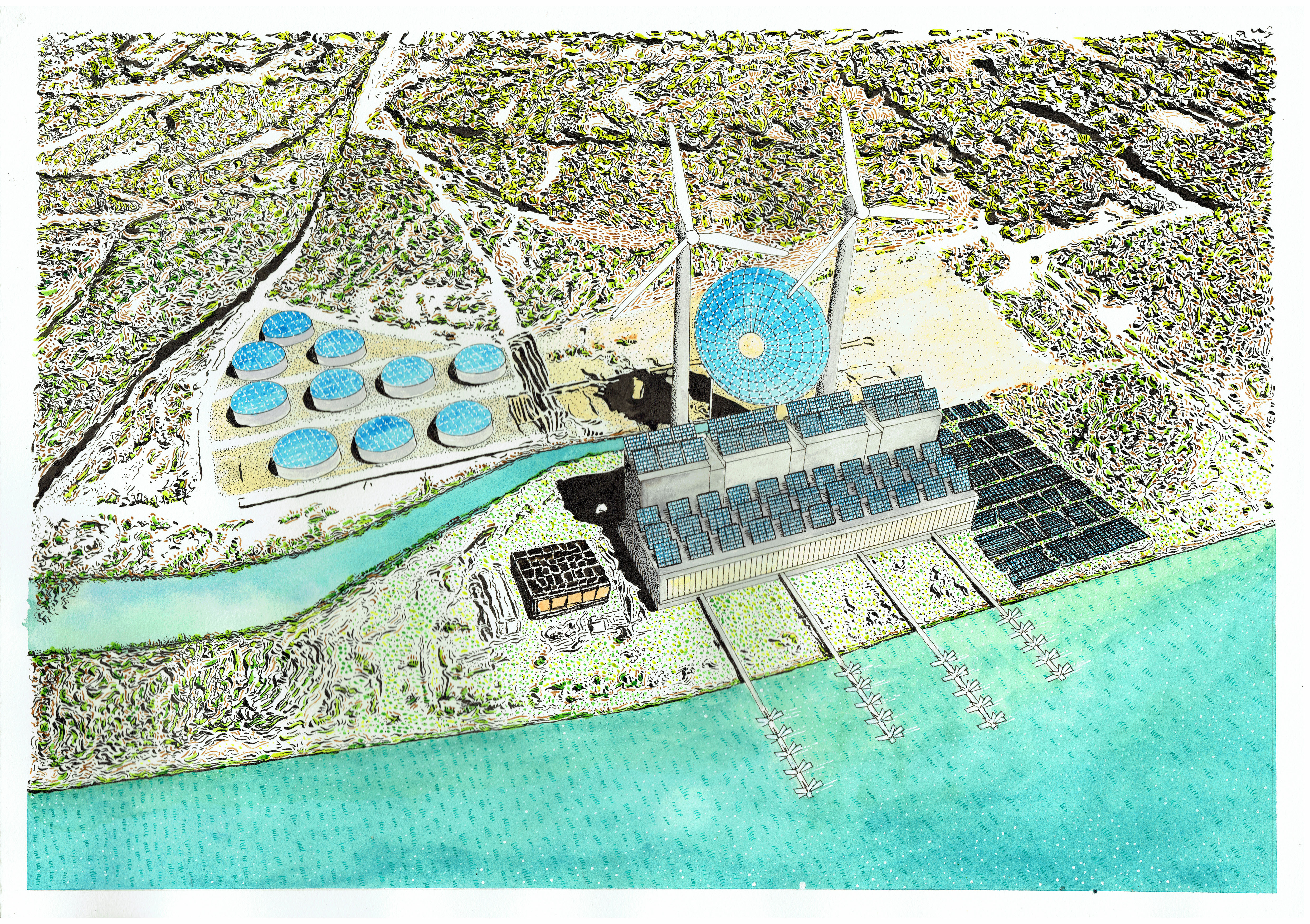 Porcheville Futur explores possible futures for the Porcheville thermal power plant, an iconic architectural landmark along the Seine River. Commissioned in 1965 and decommissioned in 2017, this power plant, with its two 220-meter chimneys, stands out in the landscape, visible from the highway and the train. It embodies the energy prowess of the 20th century while raising the ecological challenges of the 21st century. With its definitive closure, the future of this structure prompts reflection: how can we reimagine a symbol of industrial utopias in a contemporary context?